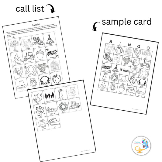 Black and White Thanksgiving Bingo - 50 Unique Cards